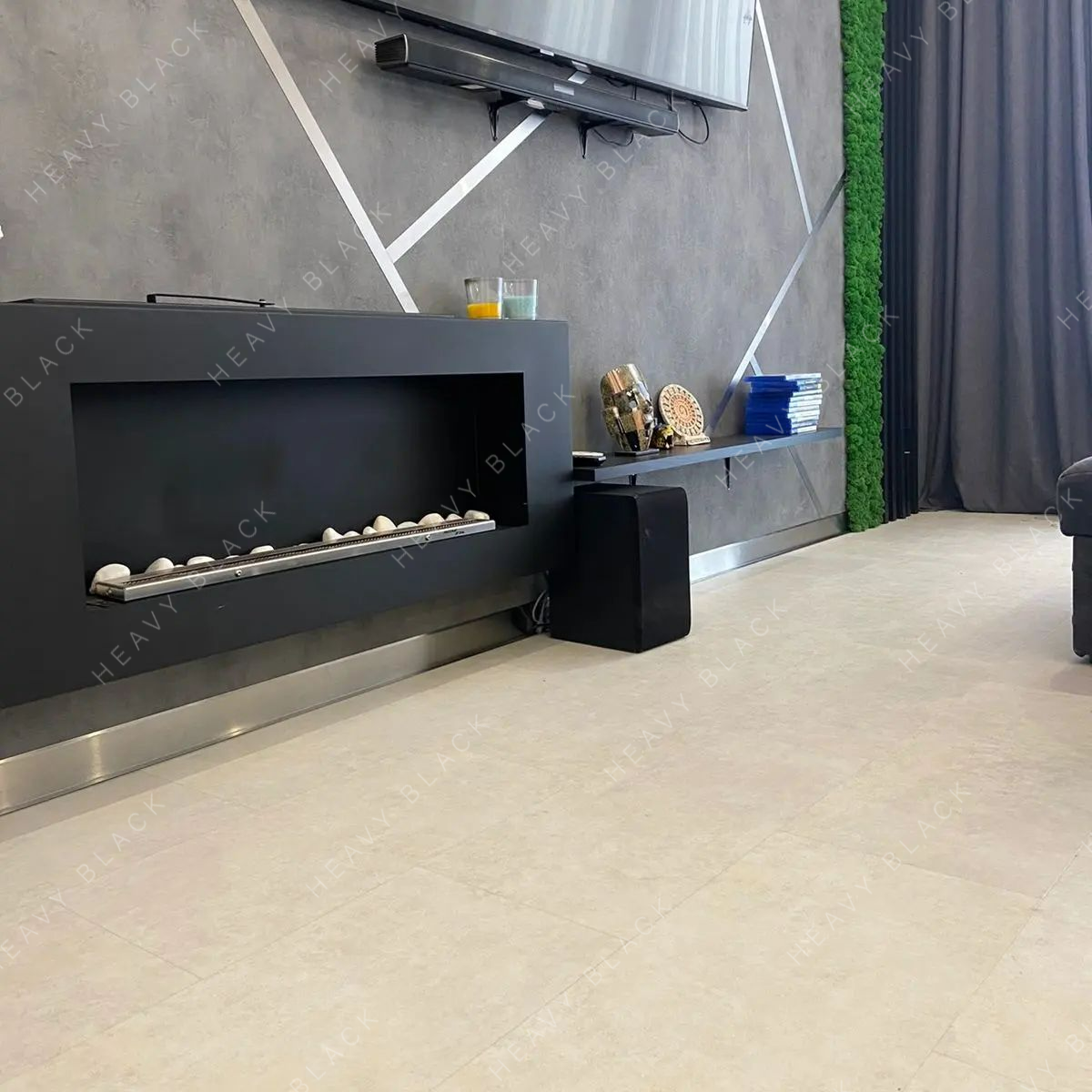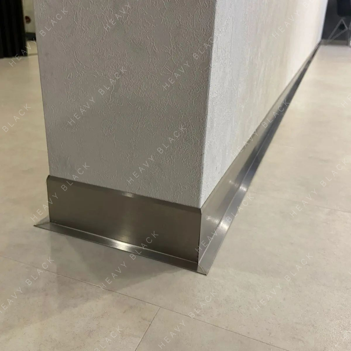 - Был изготовлен и смонтирован плинтус из шлифованной стали высотой 70 мм.