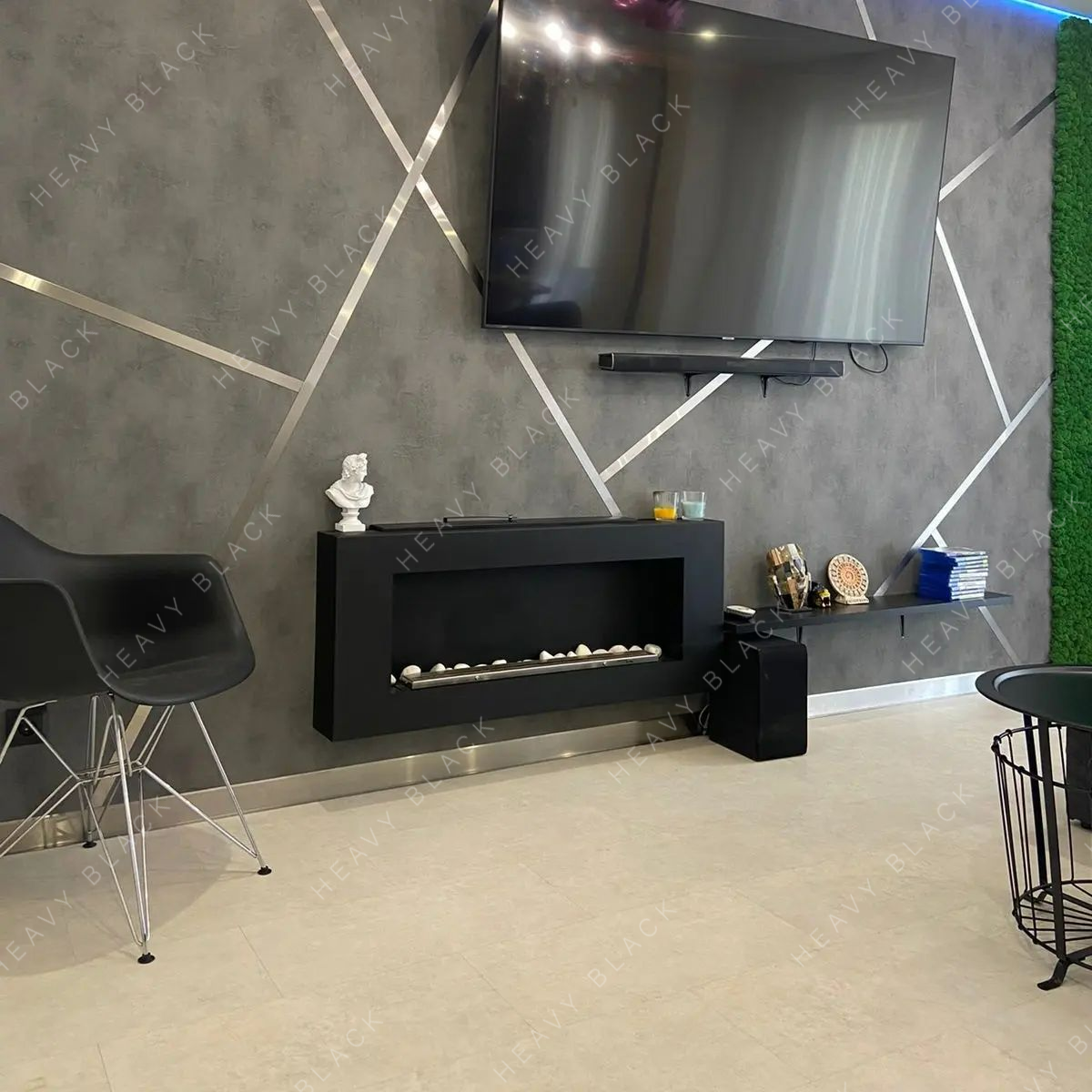 Шлифованную сталь используют для зонирования, акцентирования, декора в комбинации с более распространенными отделочными материалами: деревом, штукатуркой, обоями, плиткой и пр. Иначе при доминировании стальных деталей жилое помещение рискует превратиться в холодное и безжизненное.