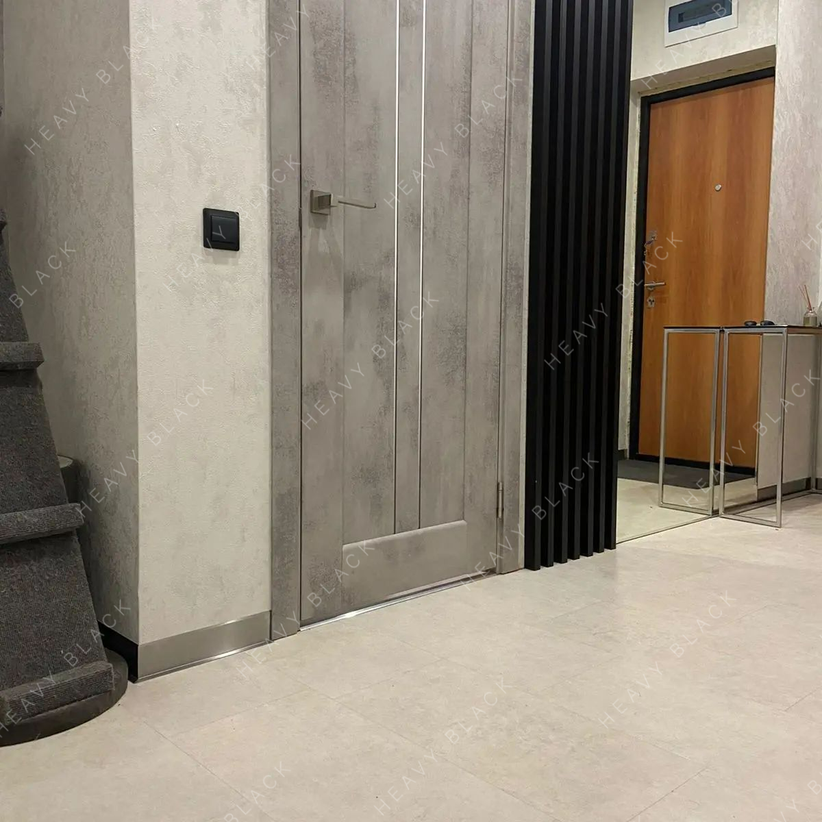 - Отлично сочетается с любым видом дверей (на данном объекте они с наличниками).