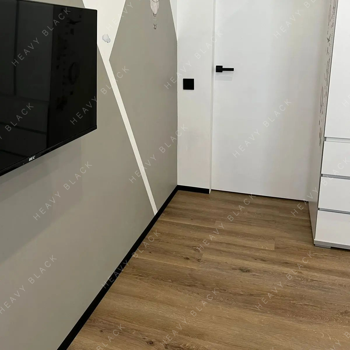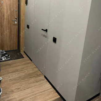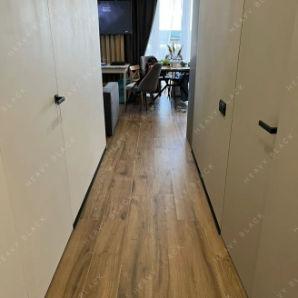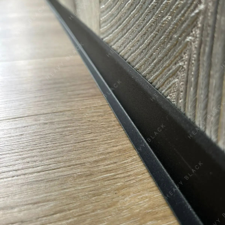 - Плинтус за счёт плоской L-образной формы даёт возможность открываться дверям на все 180 градусов и не бояться повредить плинтус.
